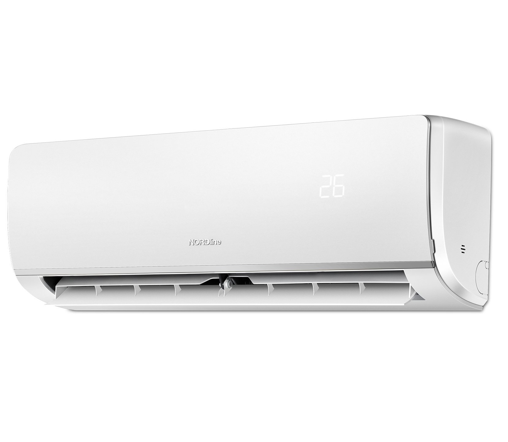 Klimatizace NORDline z naší nabídky se skládají z tiché vnitřní jednotky s výparníkem, ventilátorem a řídicí elektroniky a z venkovní jednotky s kompresorem, kondenzátorem a ventilátorem. Samozřejmostí je i dálkové ovládání.
